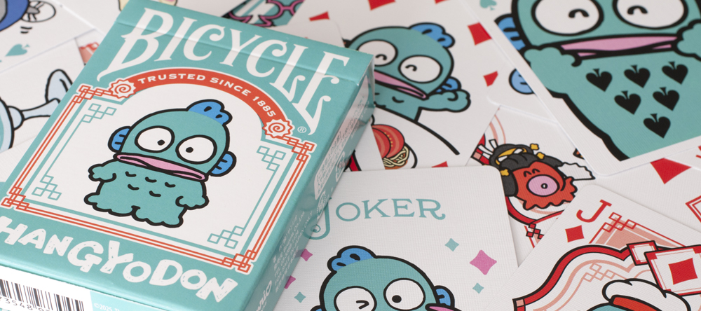 今年2025年に40周年を迎えた『HANGYODON』がバイスクルトランプに登場です!カードのあちこちでハンギョドンやタコのさゆりちゃん、おたまろ、イタローが大はしゃぎ!和風/中華/マリンスタイルとバラエティ豊かなスタイルで見ているだけでワクワクしちゃう超キュートなトランプです。